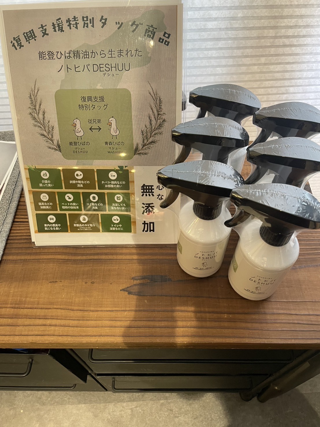 お世話になっております。 石川産直まのちゃんです。 能登ヒバを使って匂い取りの商品を開発中です。 様々な条件があり扱えるかは分かりませんが 奮闘中です。